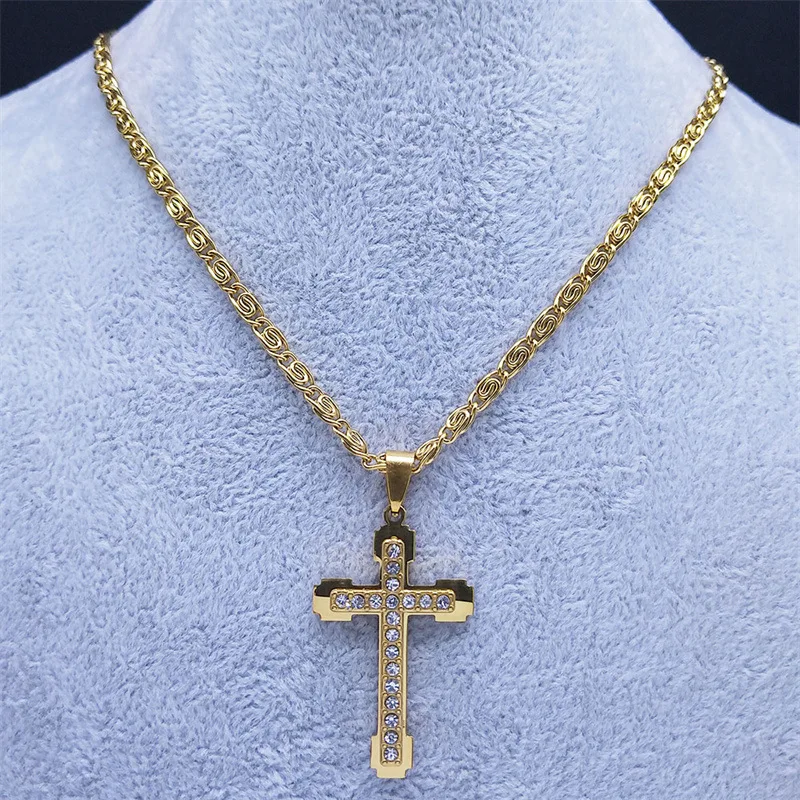 A stylish, luxurious, niche design diamond-encrusted cross necklace with a collarbone chain