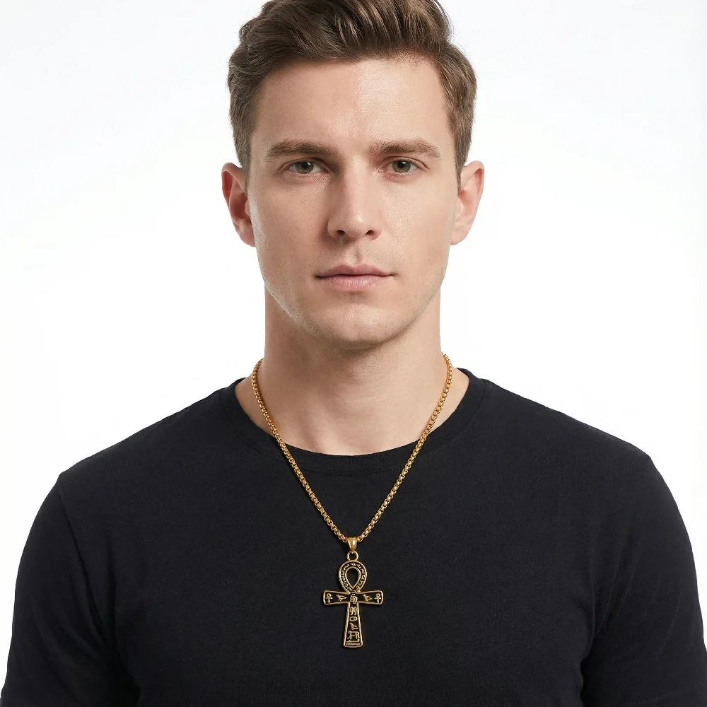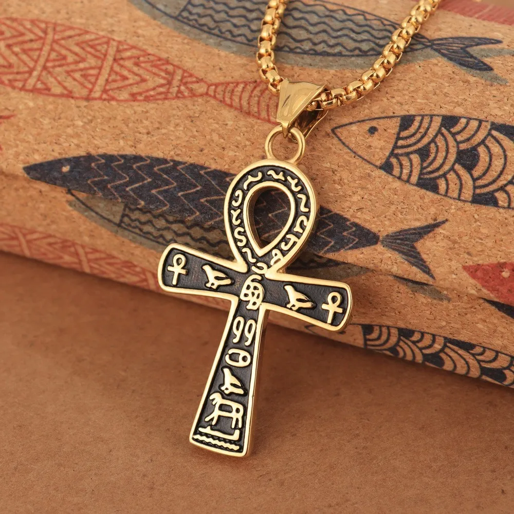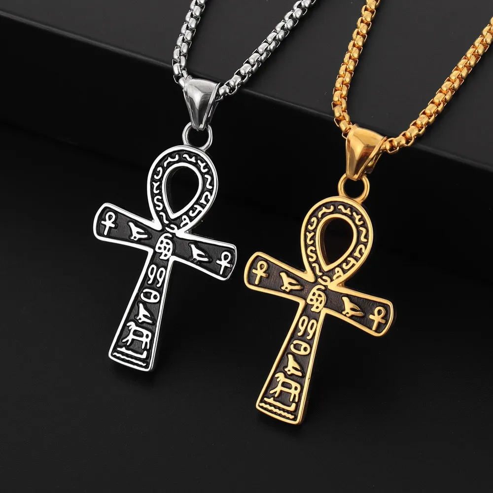 Ankh Cross Titanium Steel Pendant, Niche Ancient Egyptian Symbolic Necklace, Men's Accessory