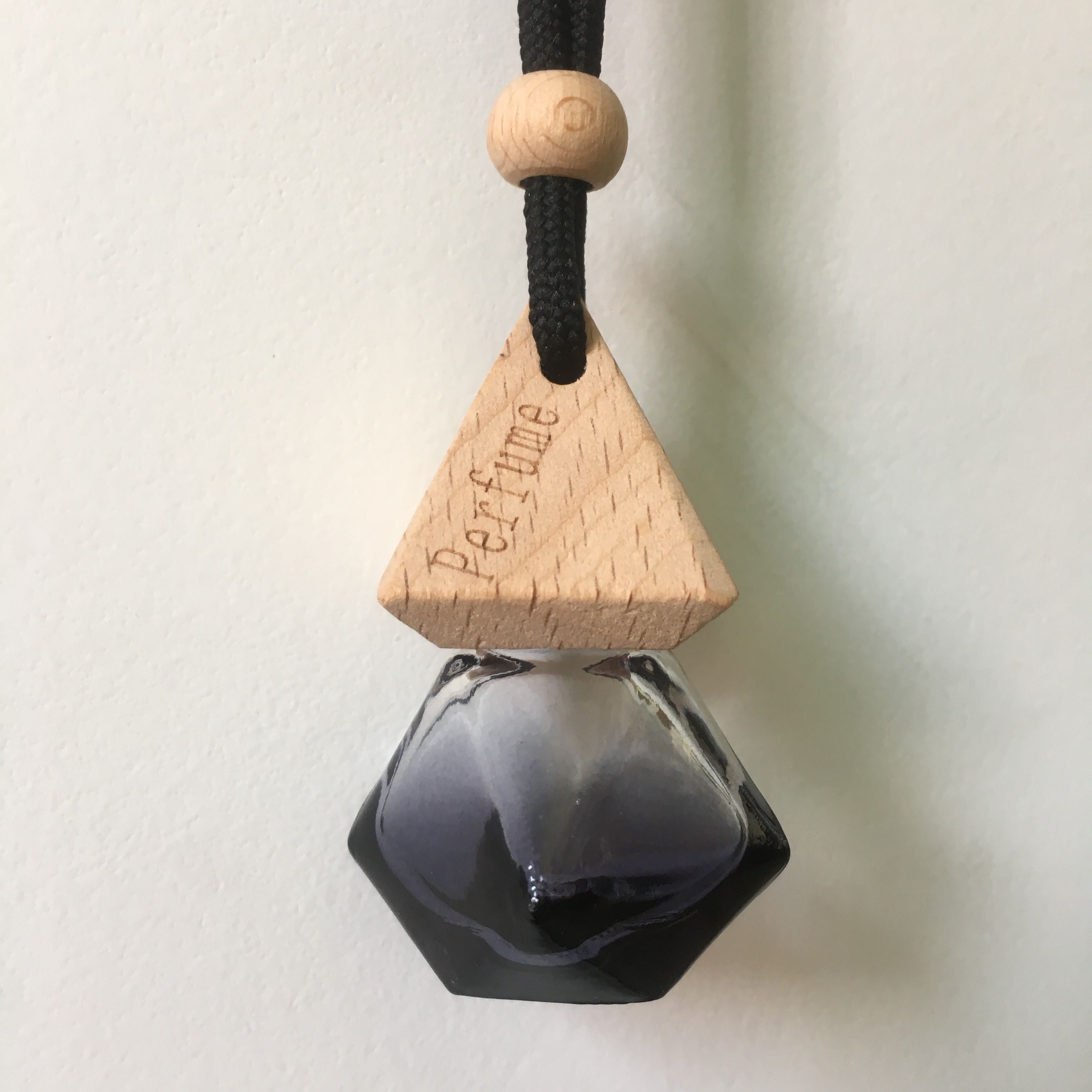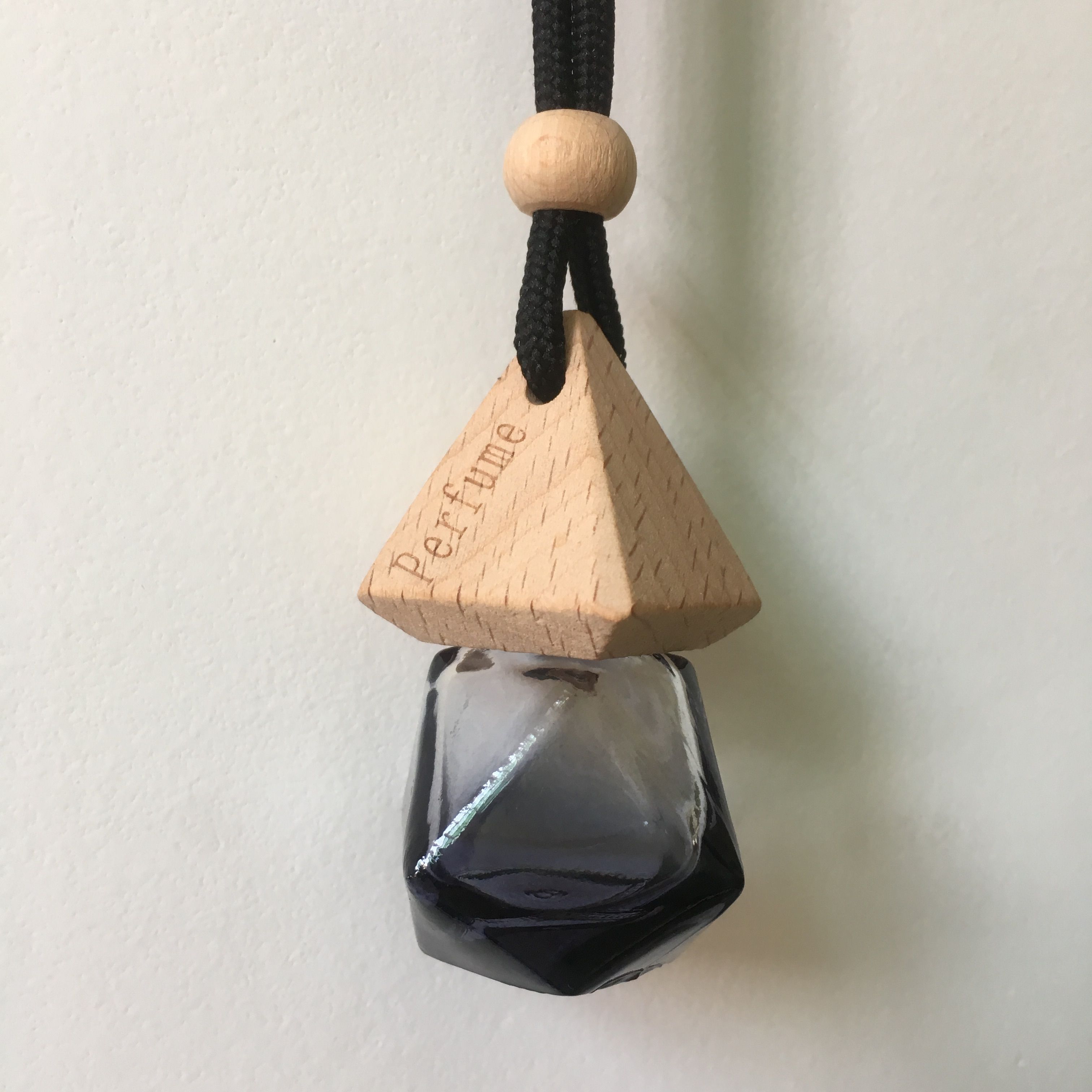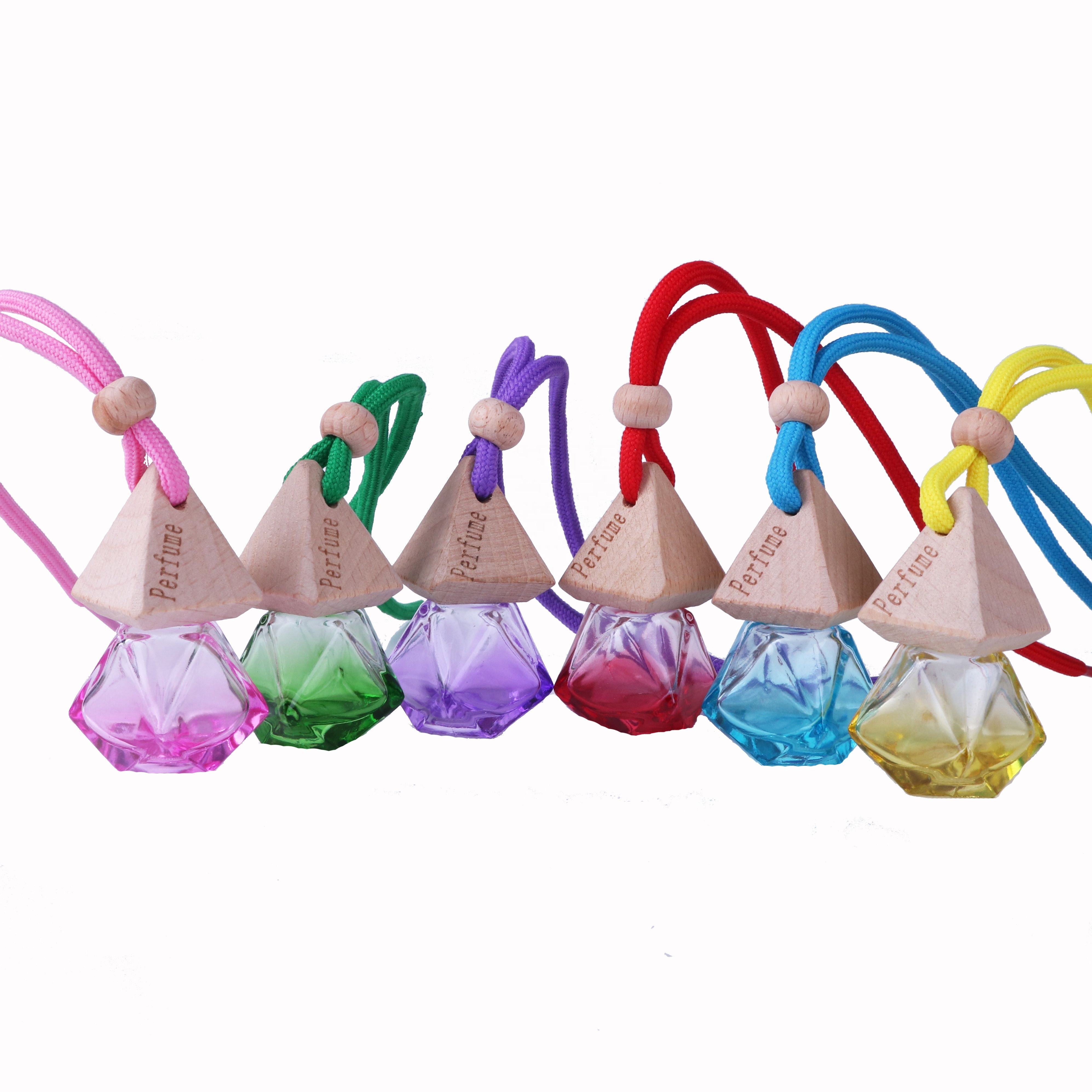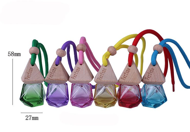 Car perfume aromatherapy pendant, car hanging ornament, long-lasting light fragrance essential oil, in-car pendant, hanging glass bottle with wooden cap