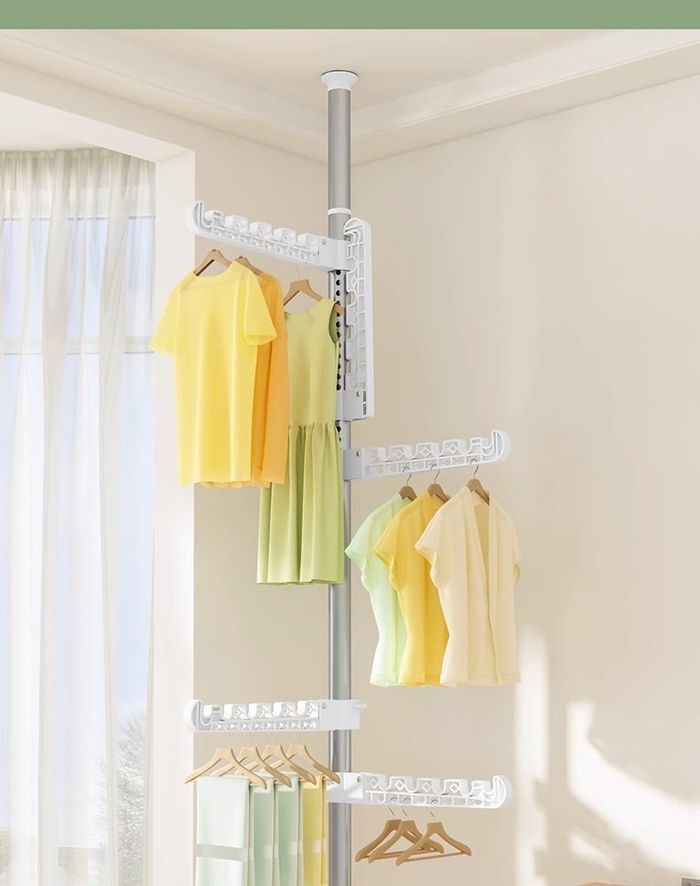 plus Floor-standing, ceiling-to-floor clothes drying rack for home and bedroom use, no drilling required, telescopic, clothes hanging tool, foldable and fixed