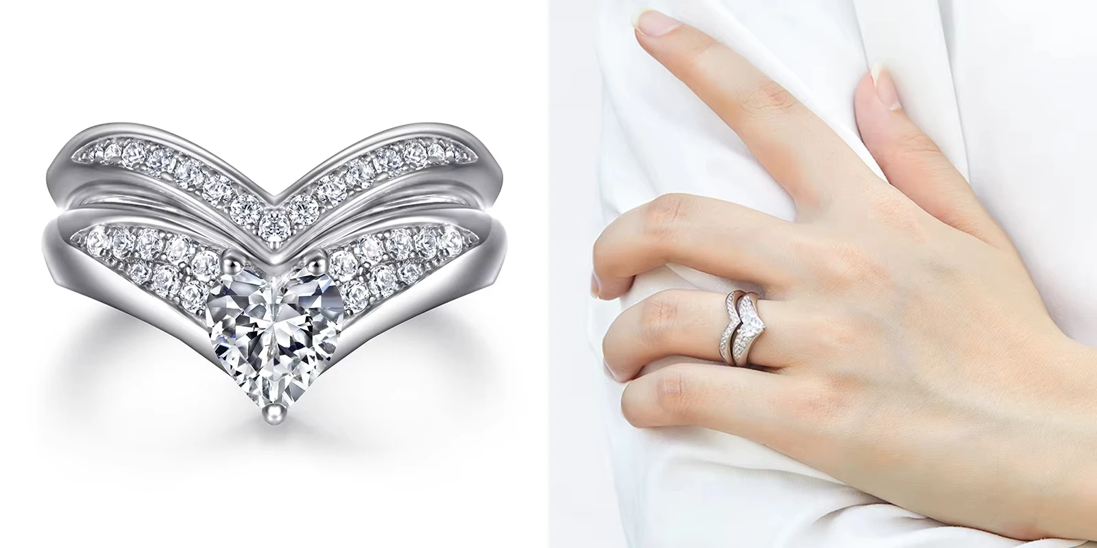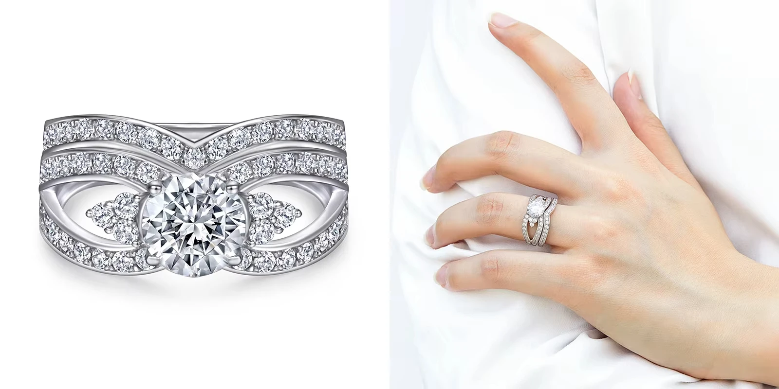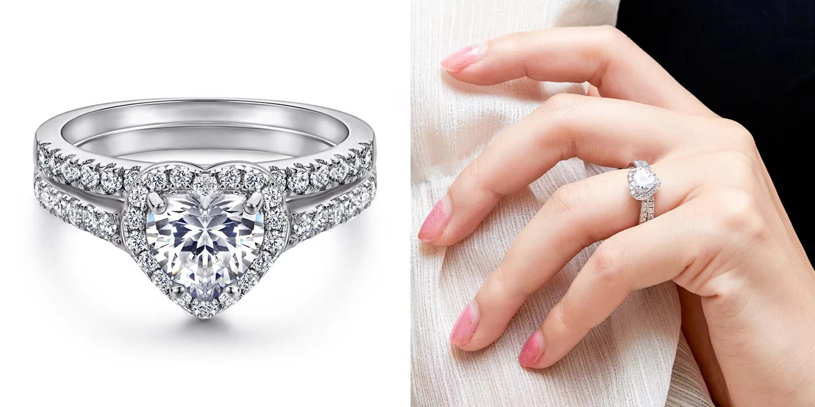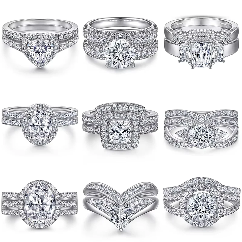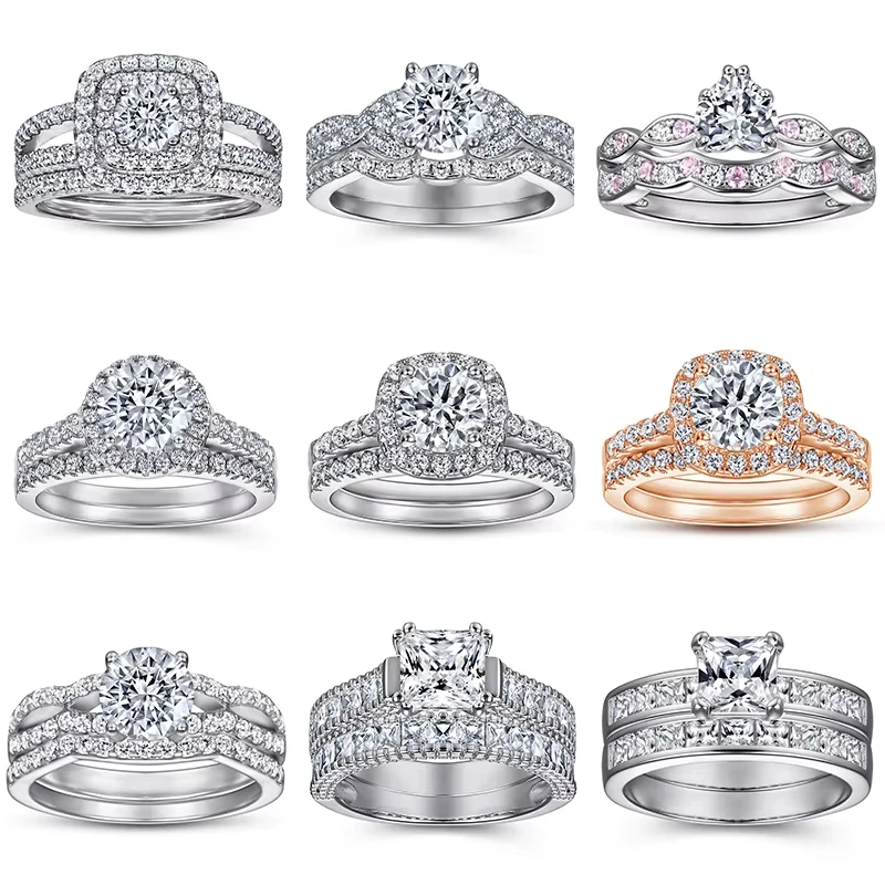 plus Princess cut carat moissanite ring set for women, engagement ring