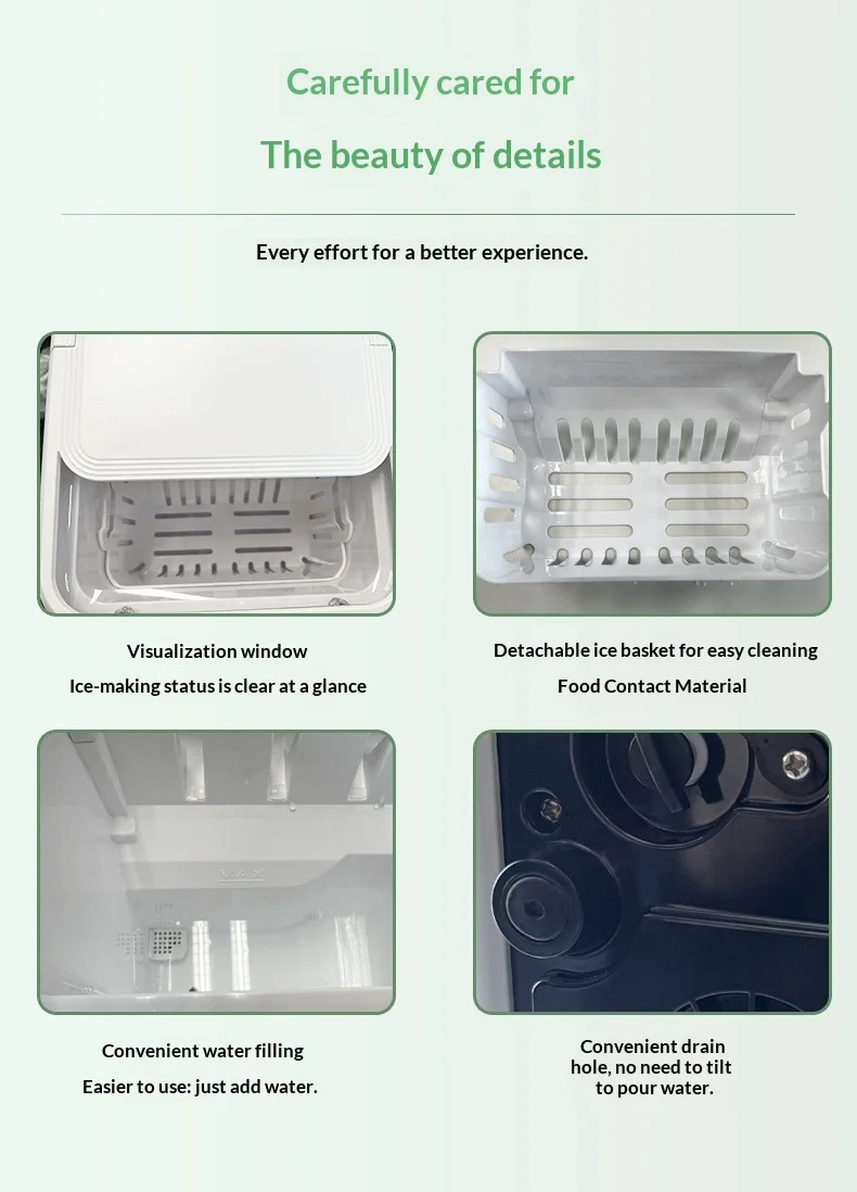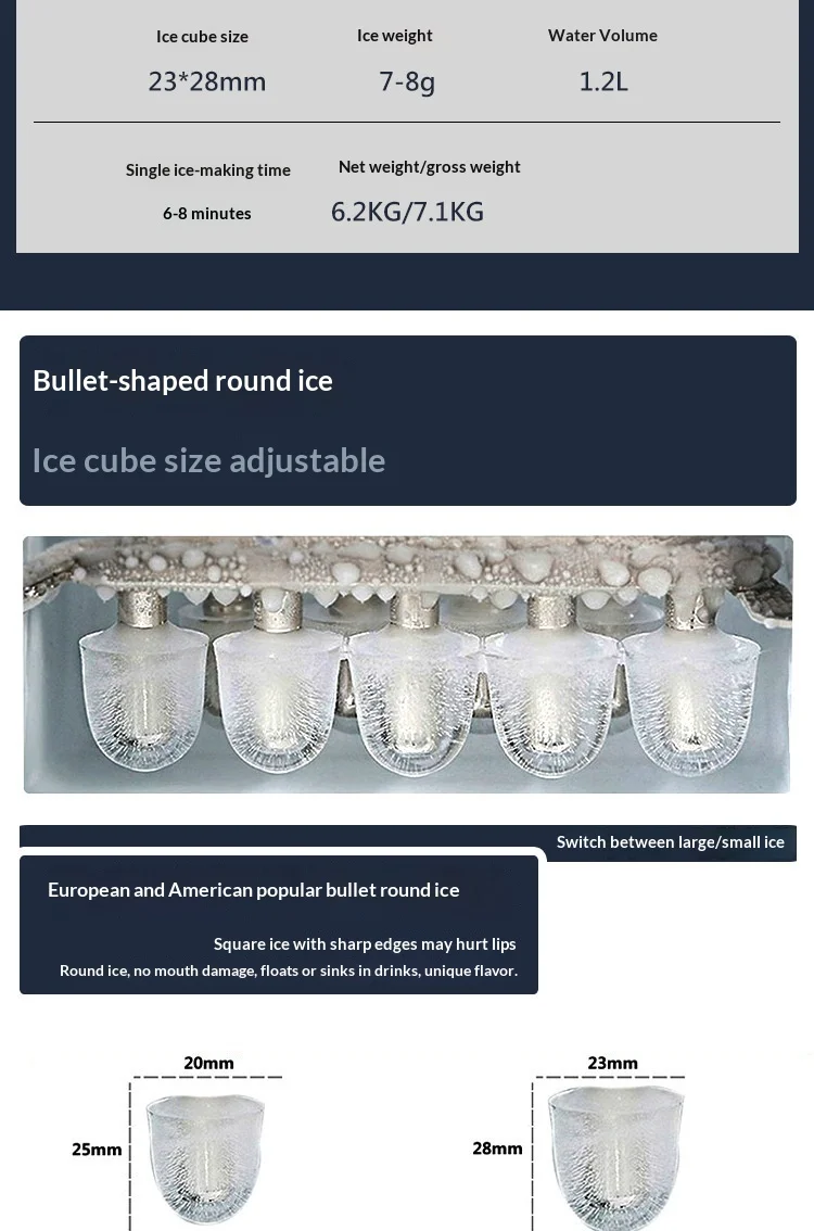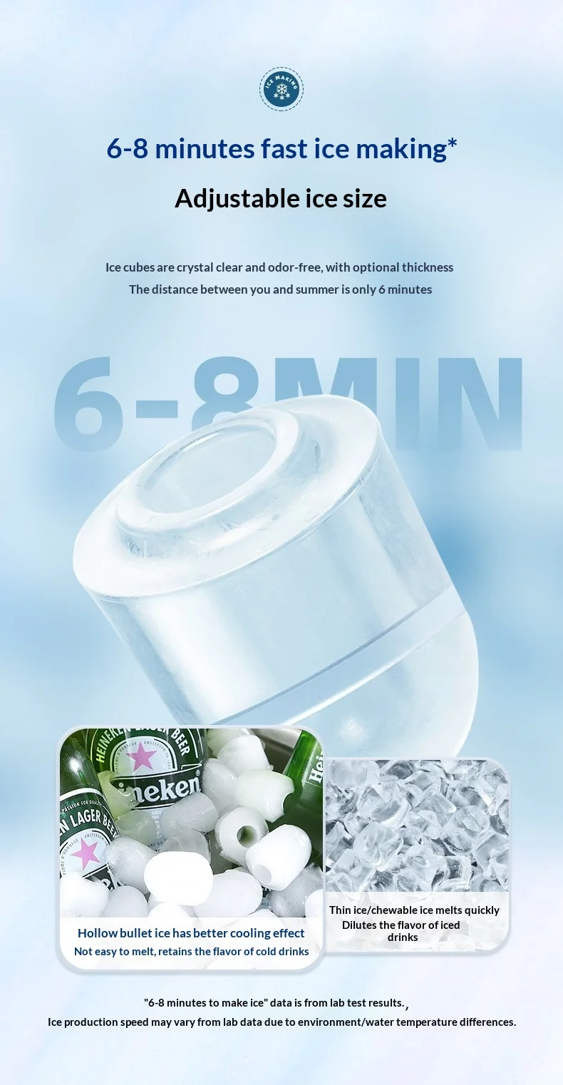 minus Small ice maker with stainless steel shell, suitable for home, dormitory, and mini bedroom use, fully automatic and multifunctional 15KG cube ice machine
