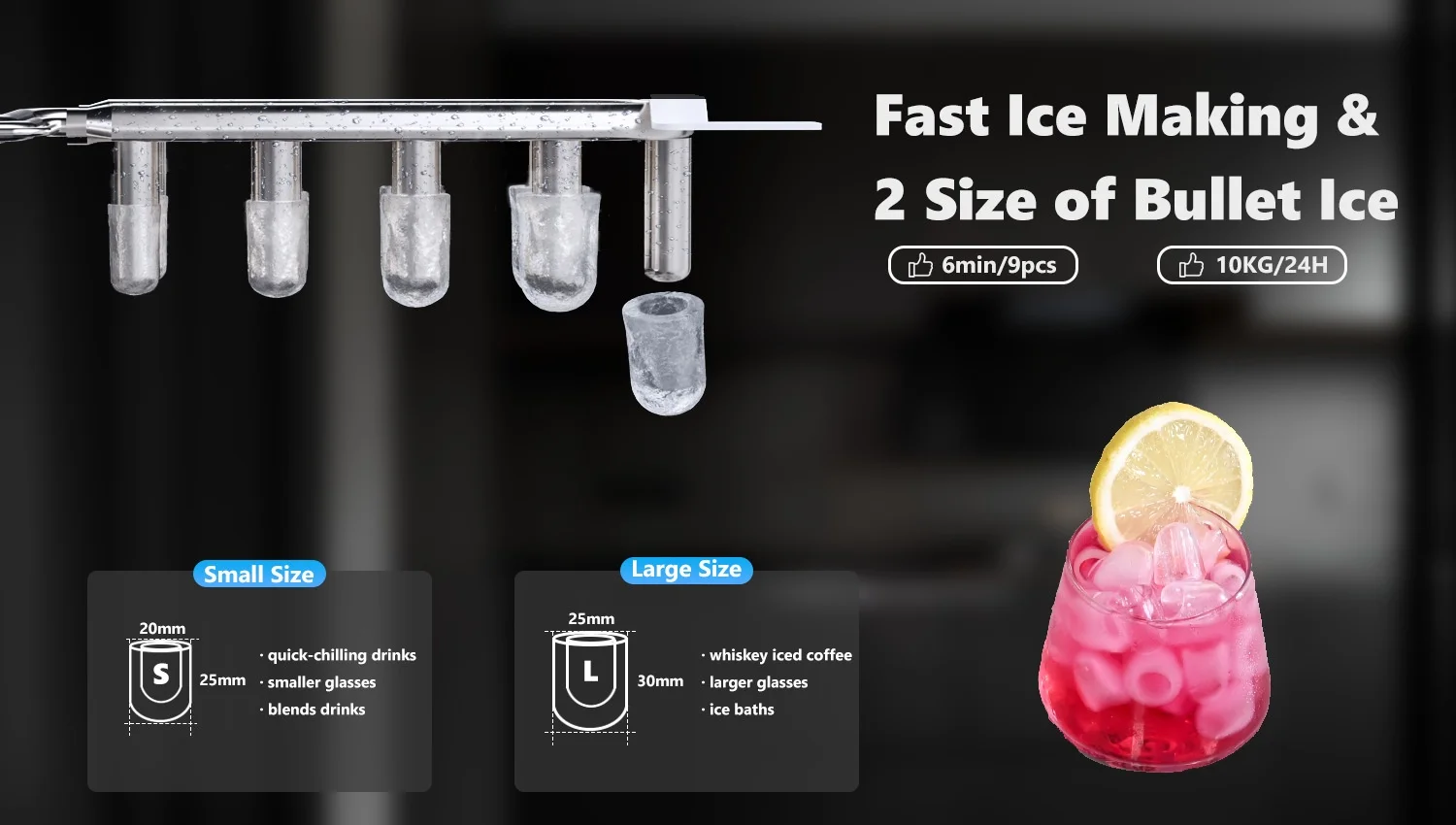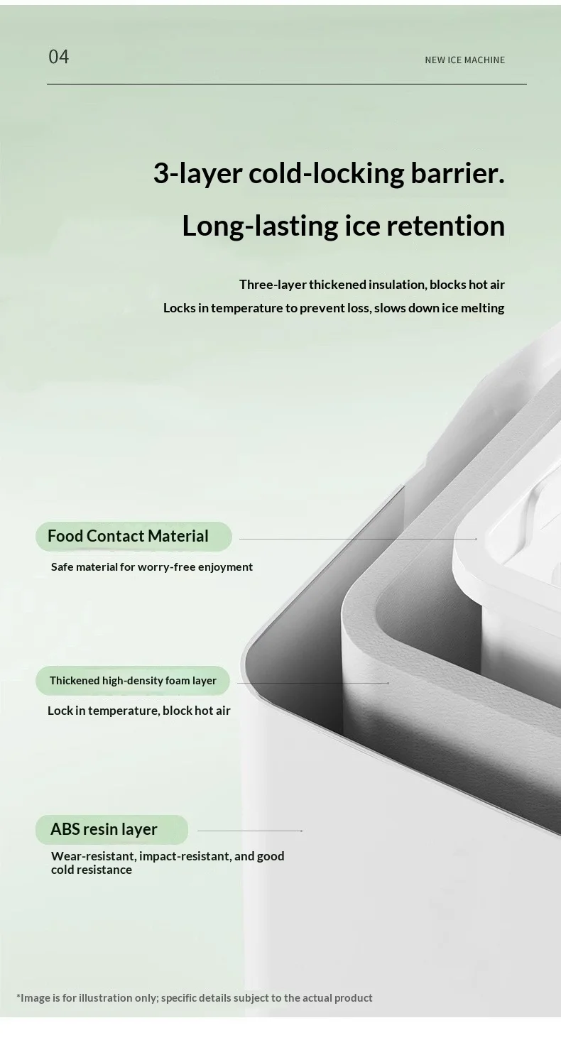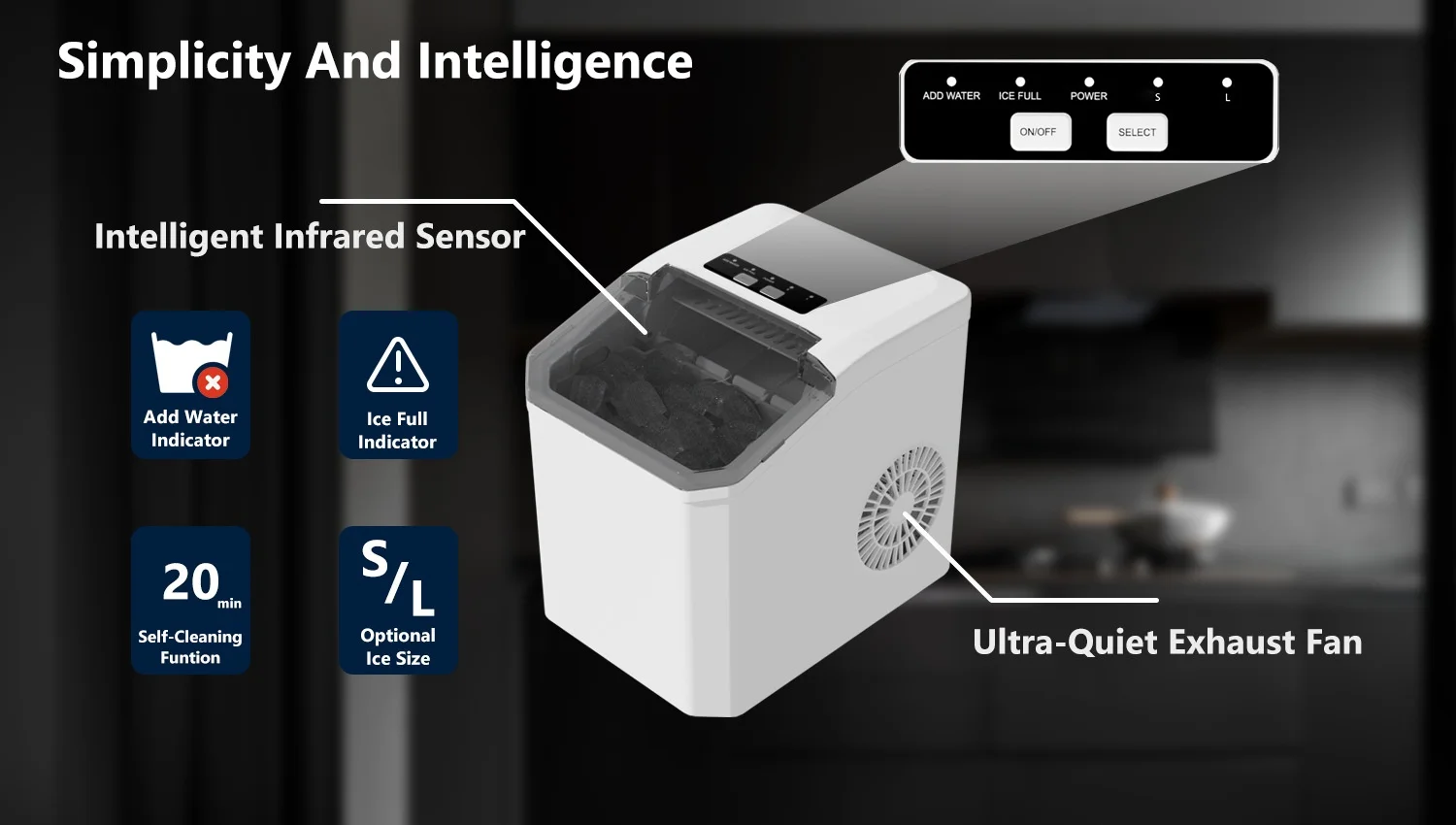 minus Small ice maker with stainless steel shell, suitable for home, dormitory, and mini bedroom use, fully automatic and multifunctional 15KG cube ice machine