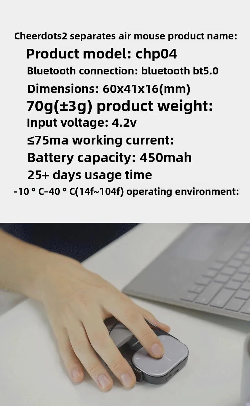 minus Cheerdots2 Smart AI Magnetic Detachable Air Mouse, Optical Ergonomic Design, Wireless Charging, Dual-Mode Switchable