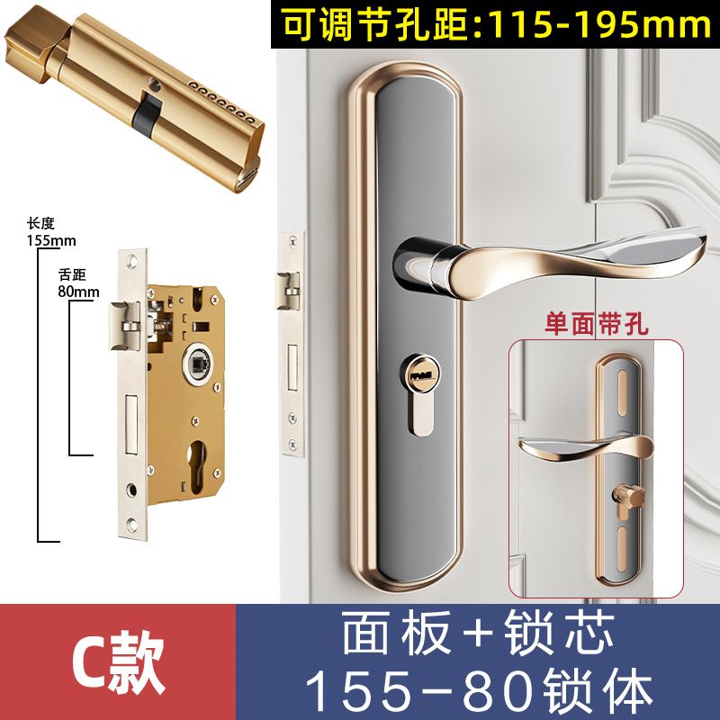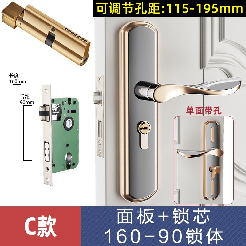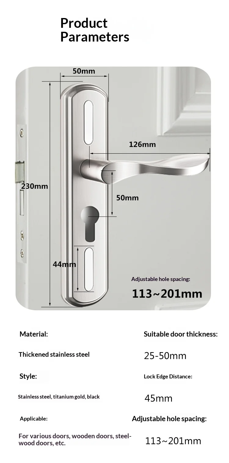 Wholesale various styles of door locks, universal indoor wooden door locks for home use, hole-free adjustable door handles and lever handles, ideal for bedroom lock replacement