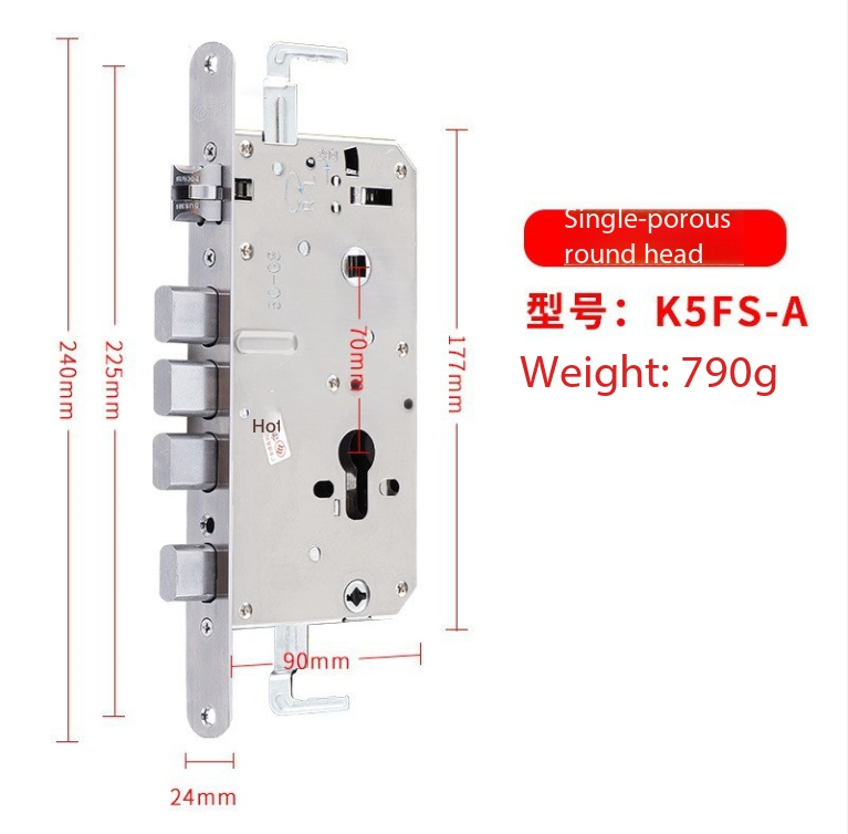 Yuema Multifunctional Stainless Steel Lock Body, Square Bolt, Cylindrical Anti-Jam Gear, Double Active & Double Quick Smart Lock Body for Security Doors